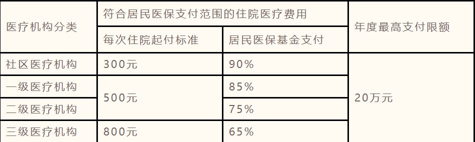 备注:①对于符合本市相关部门核定的医疗救助对象,除按居民基本医疗保险政策结报外,凭有效证件还可享受医疗救助。