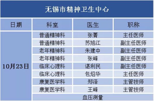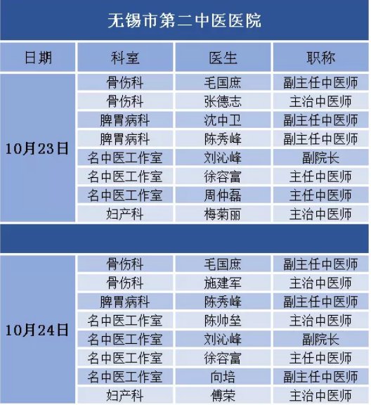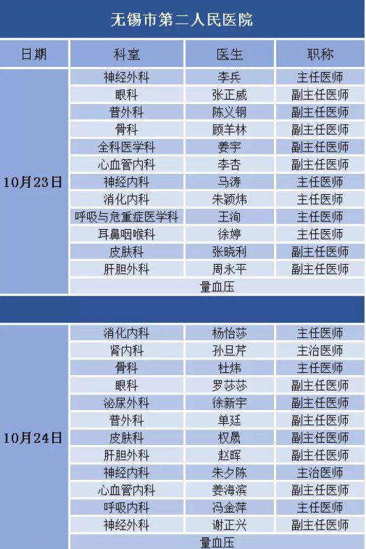 活动内容:10月23日-24日两天上午08:30至11:30,在惠山古镇青山门,顶尖医学专家团队来到现场,为市民朋友提供义诊咨询服务。在惠山古镇九龙壁还设置有中医专场,现场中医医生为市民把脉问诊。10月23日上午,上海专家团也将再次来到无锡,助力此次大会。