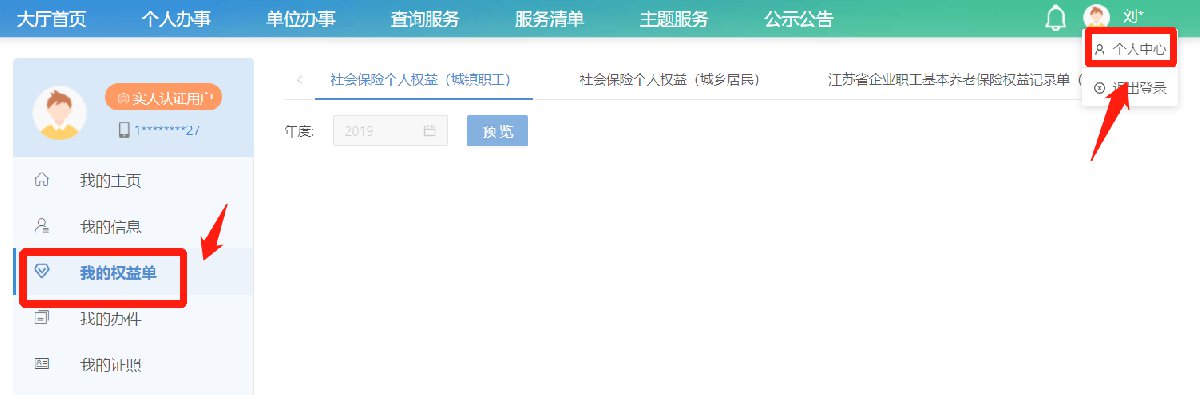 点击“社会保险”选择其中的“个人权益单”,即可查看