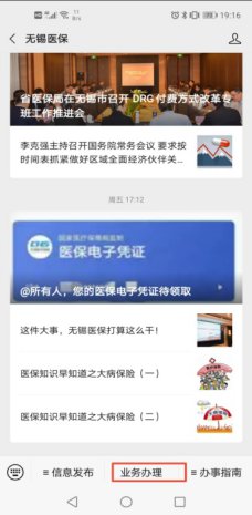 1、关注“无锡医保”微信公众号,实名登录“业务办理”栏。