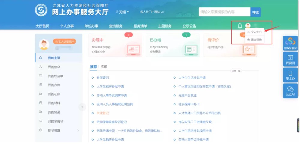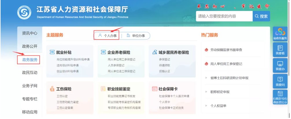 ▶登录江苏省人社网上办理大厅,点击“个人办事”
