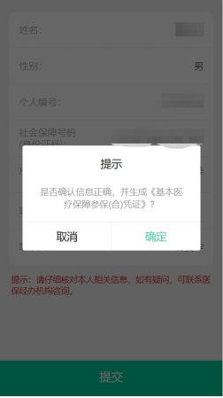 第六步:确认信息正确,并生成《基本医疗保障参保(合)凭证》,点击“确定”按钮。