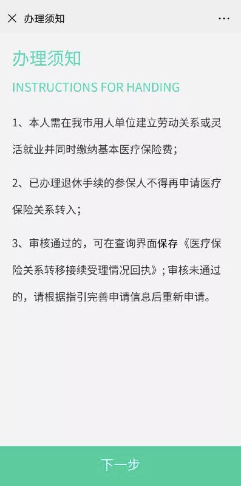 注:参保人务必仔细阅读办理须知,参保人需在我市用人单位建立劳动关系或灵活就业并同时缴纳基本医疗保险费的方可办理医保关系转入;已办理退休手续的参保人不得再申请医疗保险关系转入。