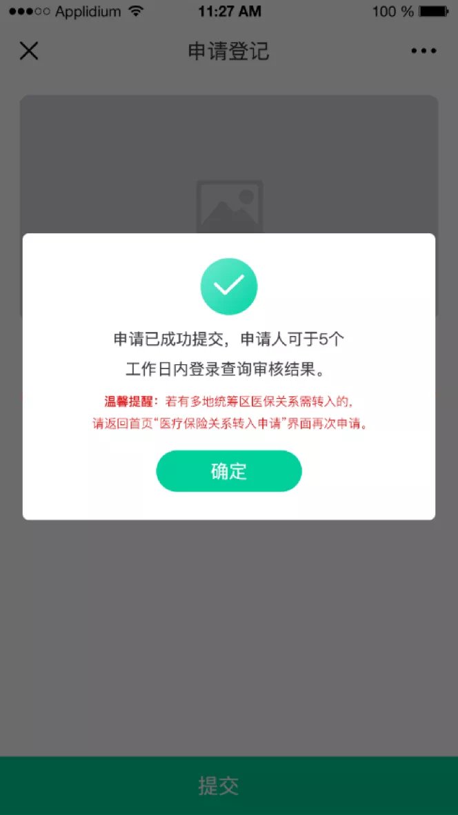 注:参保人如有多地统筹区医保关系转入情形的,可点击“确定”按钮后跳转至该功能第一页,选择“医疗保险关系转入申请”就参保人在其他统筹区的医保关系转入进行申请。