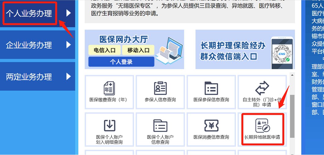 (二)不见面备案:异地就医人员可利用”无锡医保“公众号进行办理