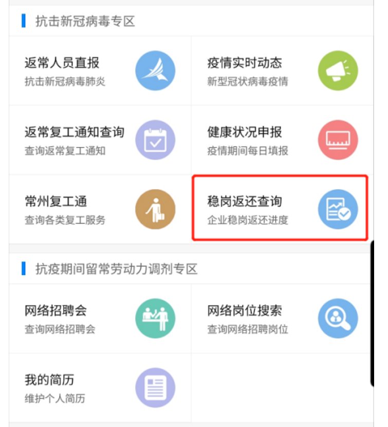 各企业可打开“常州人社”APP,选择“服务”,在“抗击新冠病毒专区”找到“稳岗返还查询”模块,点击查询,输入单位社保编码,可查看返还资金、银行、返还进度等相关信息