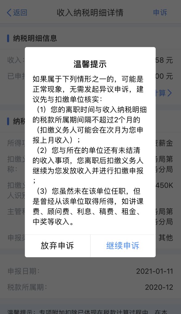 特别提醒:若属于“温馨提示”情形之一,建议先与扣缴单位核实,不需要发起异议申诉。