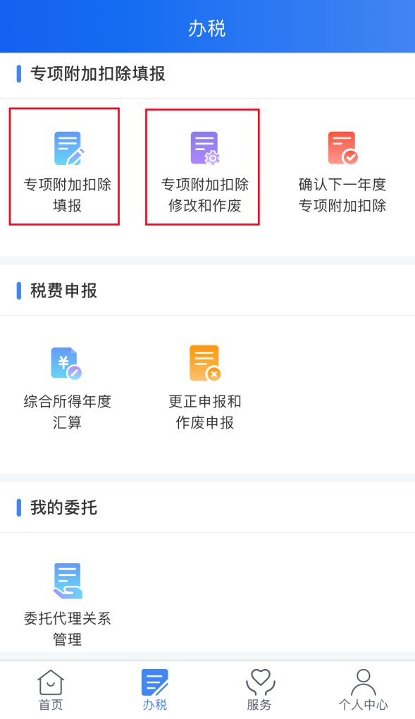 如果前期忘记填报或者需要修改,可以在首页依次点击【我要办税】-【专项附加扣除填报】或【专项附加扣除修改和作废】模块-选择“2020年度”,填报或修改相应的专项附加扣除信息。