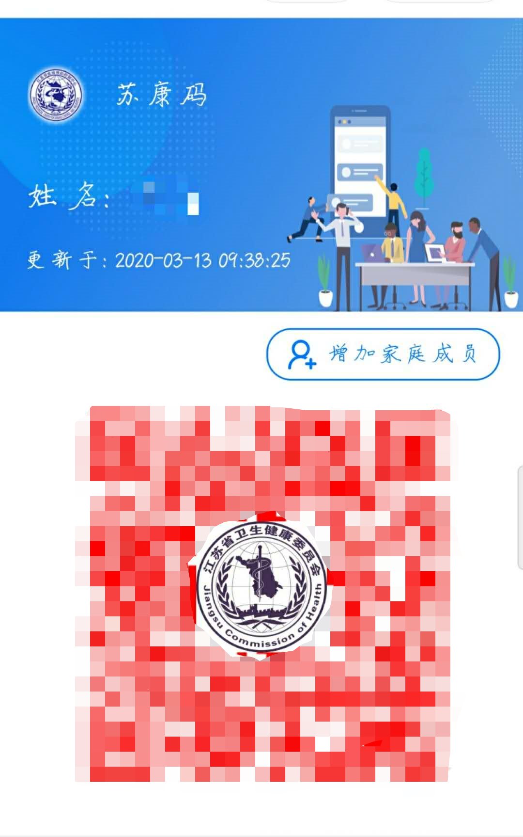 1.在苏康码显示页面点击“增加家庭成员”。