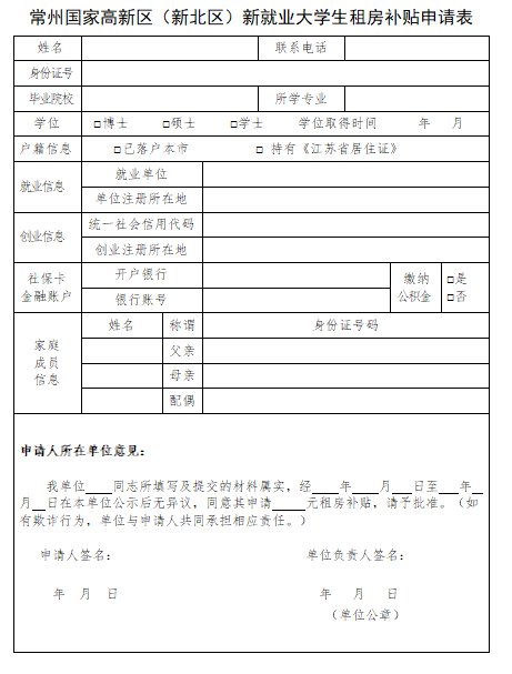 2020年常州新北大学生租房补贴申请表下载入口: