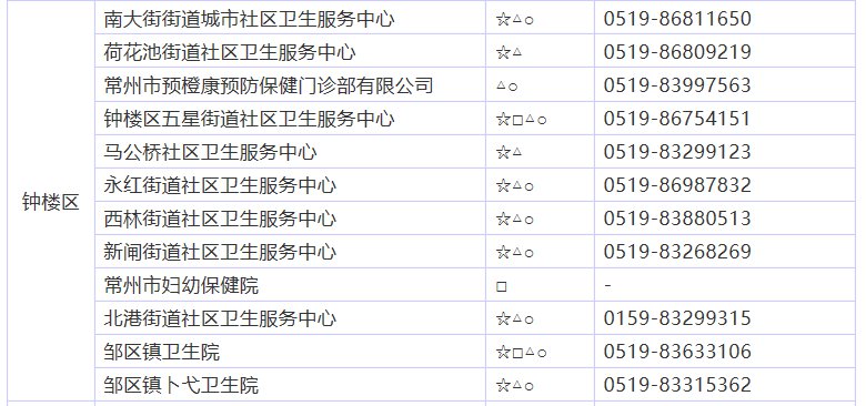 2020年常州经开儿童+新生儿+狂犬病+成人接种预防地址