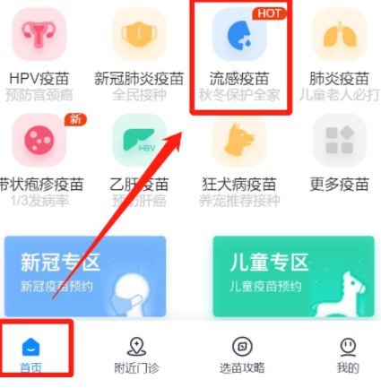 1、进入约苗平台首页,点击“流感疫苗”;
