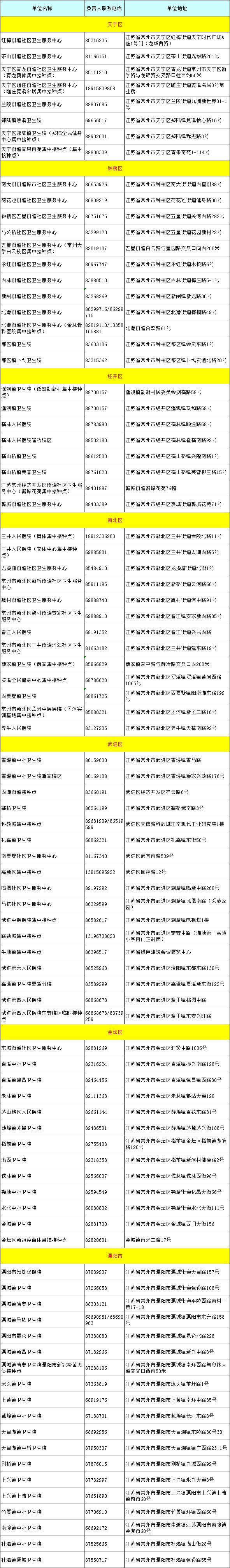 2021年常州各区新冠疫苗接种点地址+电话汇总