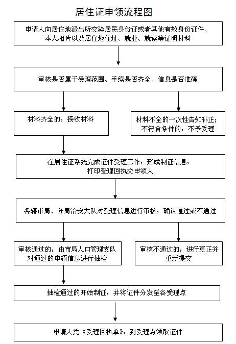 向居住地派出所申请交验身份证、相片、居住地就业就读等证明材料,等派出所审核通过,申请凭受理回执单领取证件。