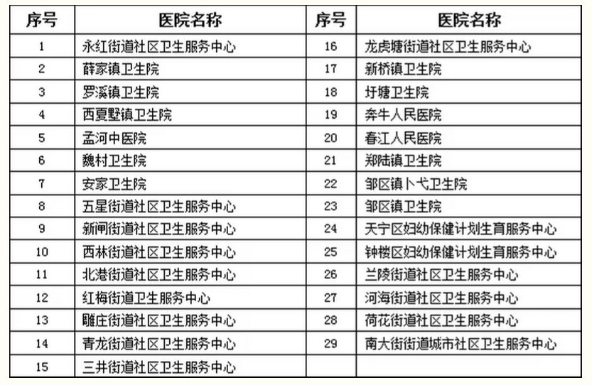 附:29家生育定点医院名单