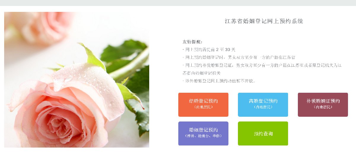①网上预约入口:江苏省婚姻登记网上预约系统