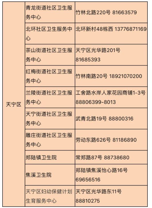 | 天宁区妇幼保健计划生育服务中心 | 光华路11号 | 天宁区辖区范围 |