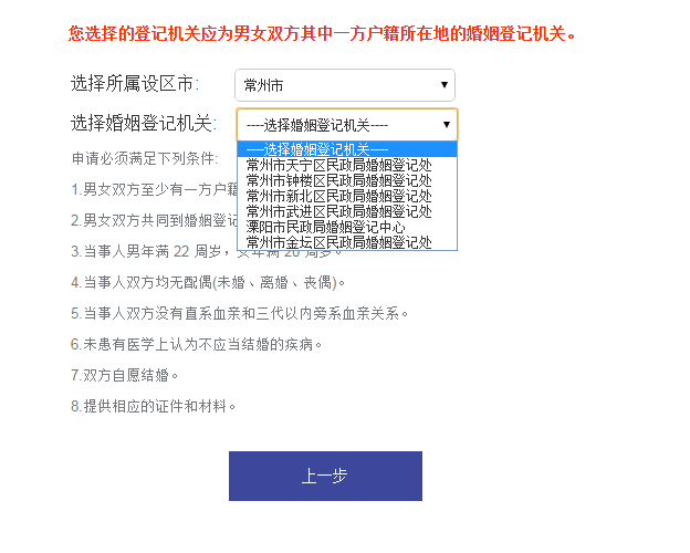 (1)如果一方为常州户籍,则前往常州户籍所在地办理结婚登记。