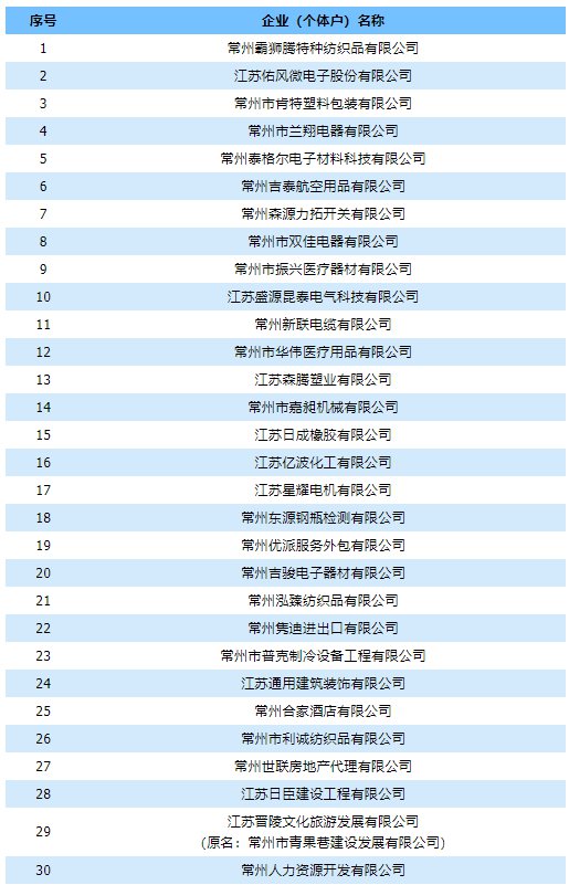 常州武进复工企业名单 常州武进复工企业名单公示