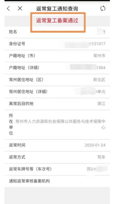 常州返常复工通知查询操作指南: