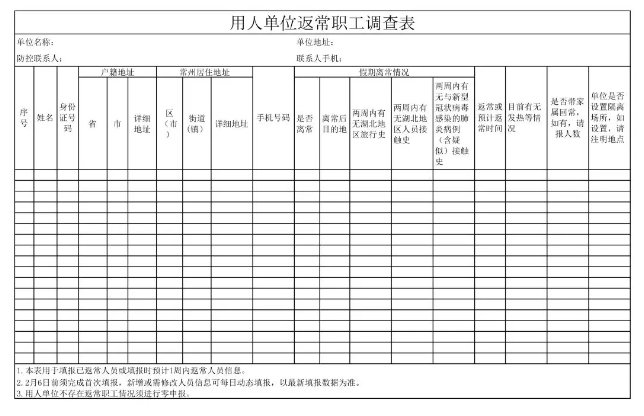但如企业已提供类似报表给相关疫情防控部门,可不再需要报送纸质《用人单位返常职工调查表》给所在地街道(镇)人社所。