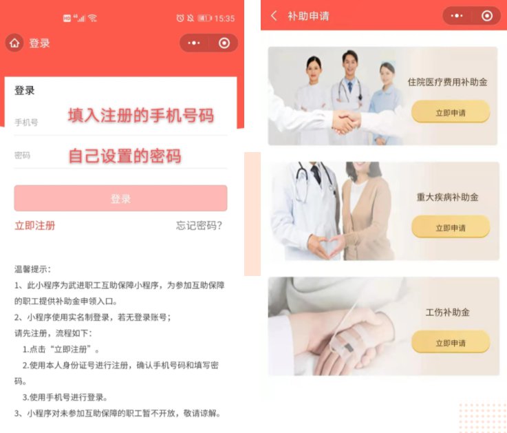 1.关注“武进职工互助保障”微信公众号,点击右下角“互助保障”即可进入“武进职工互助保障”小程序。首页点击“补助申请”即可进入登录页面。