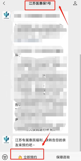 第一步:微信搜索并关注公众号“江苏医惠保1号”,选择“立即预约”