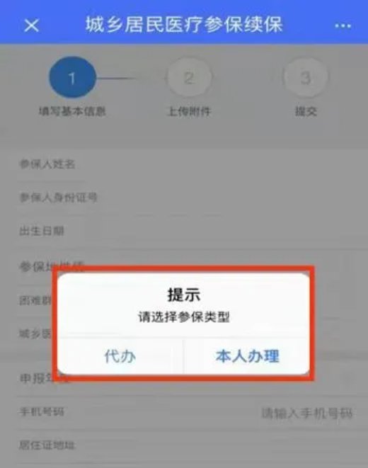 选择参保对象中的“代办”可为直系亲属办理参保续保。
