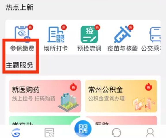 登录“我的常州”APP首页,在“热点上新”中点击“参保缴费 ”