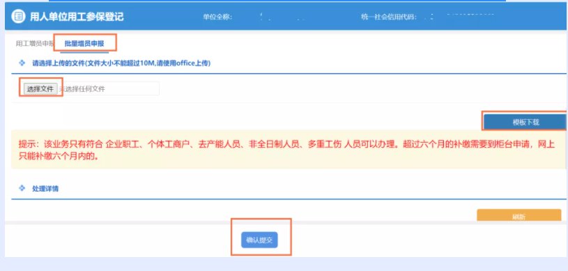点击“批量增员申报”,下载模板后填写,上传材料并提交。