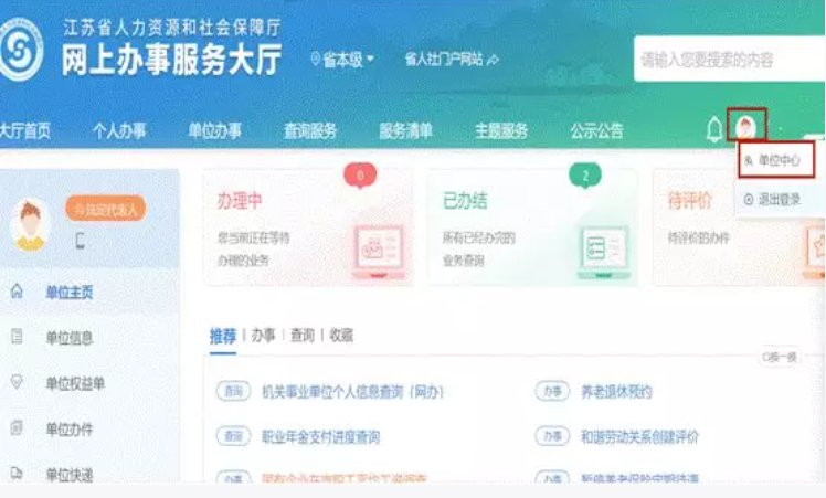 第一步:登录江苏省人力资源和社会保障厅 “网上办事服务大厅” 平台(https://rs.jshrss.jiangsu.gov.cn/index/)(特别提醒:请参保单位提前在网厅注册账密用户)。