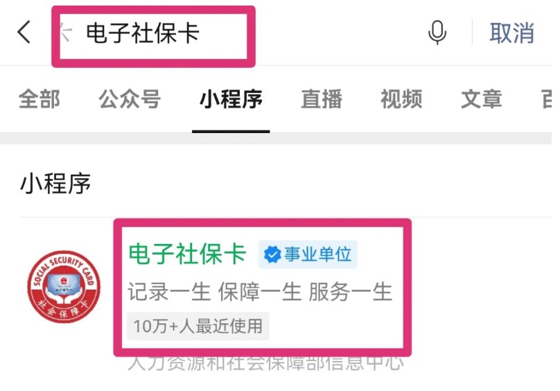1、在微信中搜索小程序“电子社保卡”;