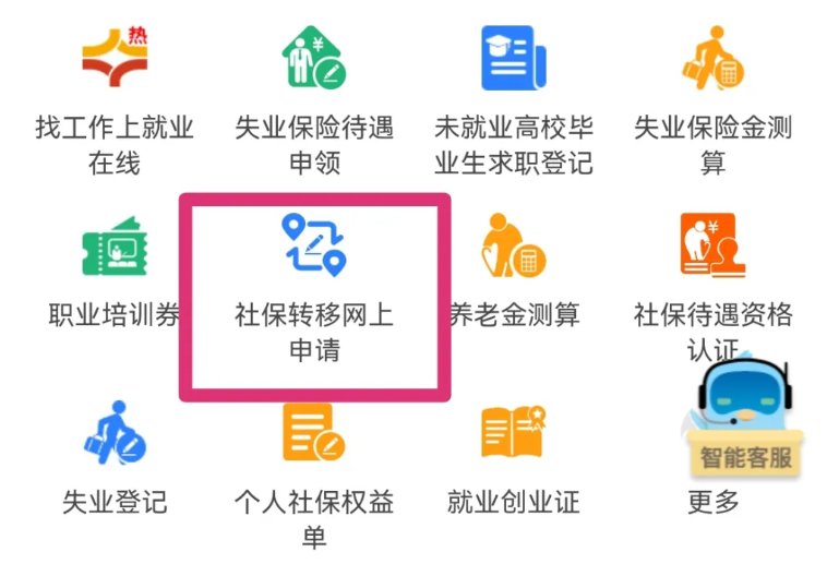 2、点击 “社保转移网上申请”;