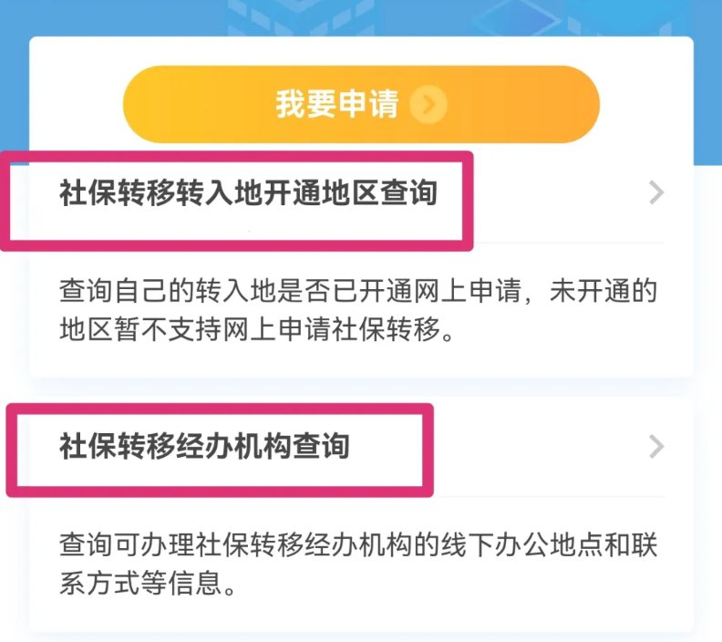 4、选择“社保转移转入地开通地区查询”,可查询经办机构是否开通网上申请服务;也可通过“社保转移经办机构查询”查询各地经办机构办公地址和联系方式;
