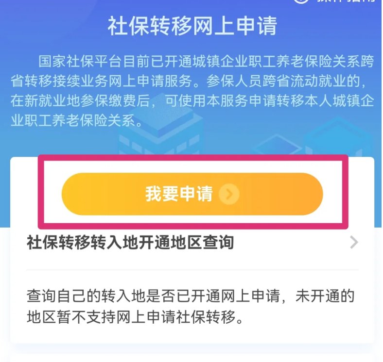 5、点击“我要申请”,申请办理社保转入手续;