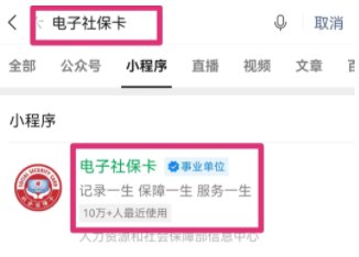 1、在微信中搜索小程序“电子社保卡”;