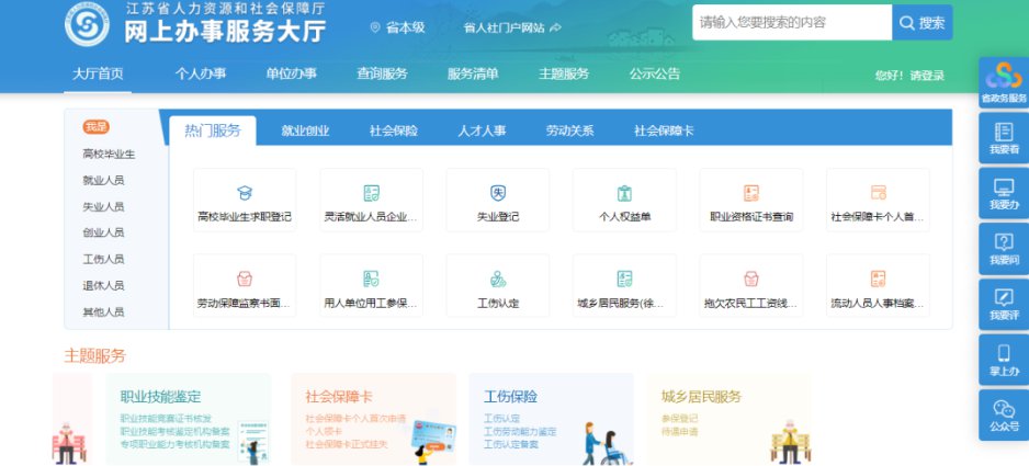第一步:输入网址:http://rs.jshrss.jiangsu.gov.cn/,即可看到网办大厅界面。
