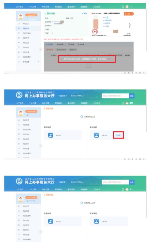 “未认证用户”可通过网上办事服务大厅的“个人中心→基本信息修改”或江苏智慧人社APP“我的→我的信息”补充必填项后成为“实名用户”。