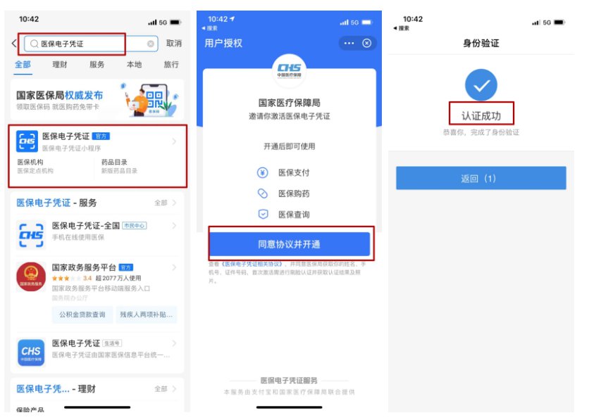 搜索“医保电子凭证”,进入“医保电子凭证”,点击“同意协议并激活”,通过人脸识别认证设置6位数字密码,设置成功后,就可以使用了。