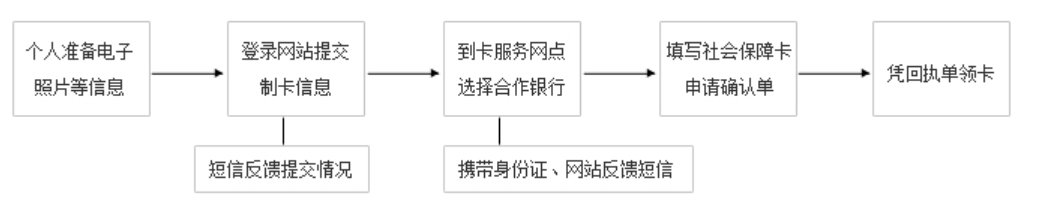 4.申领人携带身份证及网站反馈短信,到参保关系所在地卡服务网点,办理合作银行选择等后续业务步骤。