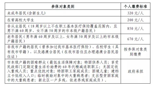 2021年常州市市本级城乡居民基本医疗保险个人缴费标准