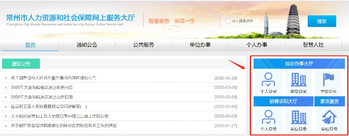 常州市人力资源和社会保障局官网——网上办事大厅——登录(第一次登陆的用户先注册,并通过实名制认证)——劳动就业——失业登记申报