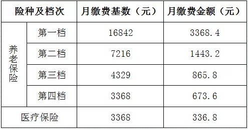 在此期间灵活就业人员可以在以上四档中任选一档缴纳基本养老保险。以第四档为例,每月需缴纳养老保险费673.6元;