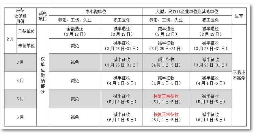 常州对中小微企业、个体工商户免征2-6月养老、失业、工伤三项社保费,对大型企业等其他单位(不含机关事业单位)减半征收2-4月养老、失业、工伤三项社保费;