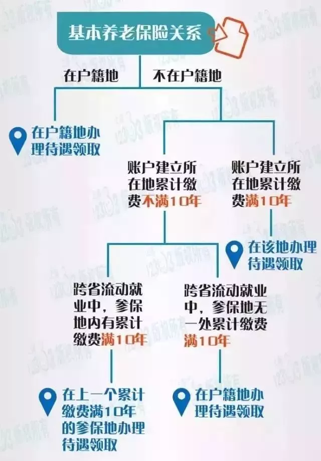 基本养老保险关系不在户籍所在地,而在基本养老保险关系所在地累计缴费年限满10年的,在该地办理待遇领取手续,享受当地基本养老保险待遇。