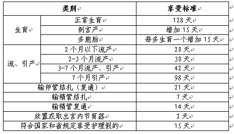 生育津贴按照职工产假或者休假天数计发,计发标准为职工所在用人单位上年度职工月平均缴费工资除以30,乘以相对应的休假天数。具体见下表: