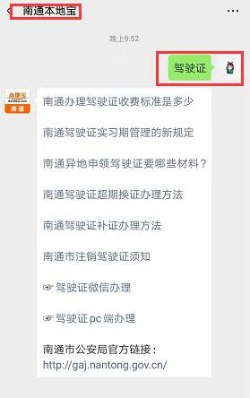 南通本地宝更新南通驾驶证业务办理相关资讯啦!大家可以微信搜索关注南通本地宝公众号,对话框发送【驾驶证】就能获取最新相关信息哦!