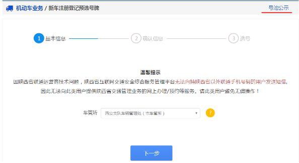 若用户在此步骤之后的选号步骤中未完成选号,则用户再次进入预选号牌业务时,若用户还拥有选号机会, 均直接跳转到本步骤。