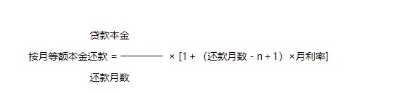 等额本金还款方式又称为利随本清还款方式,即利息随着每月贷款本金的偿还而结清,已偿还的本金不再参与下次利息的计算,计算公式如下: