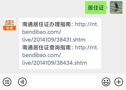 打开微信,搜索并关注【南通本地宝】公众号,回复【居住证】即可查看南通居住证查询、办理指南,还能进行各类居住证补办变更等信息。
